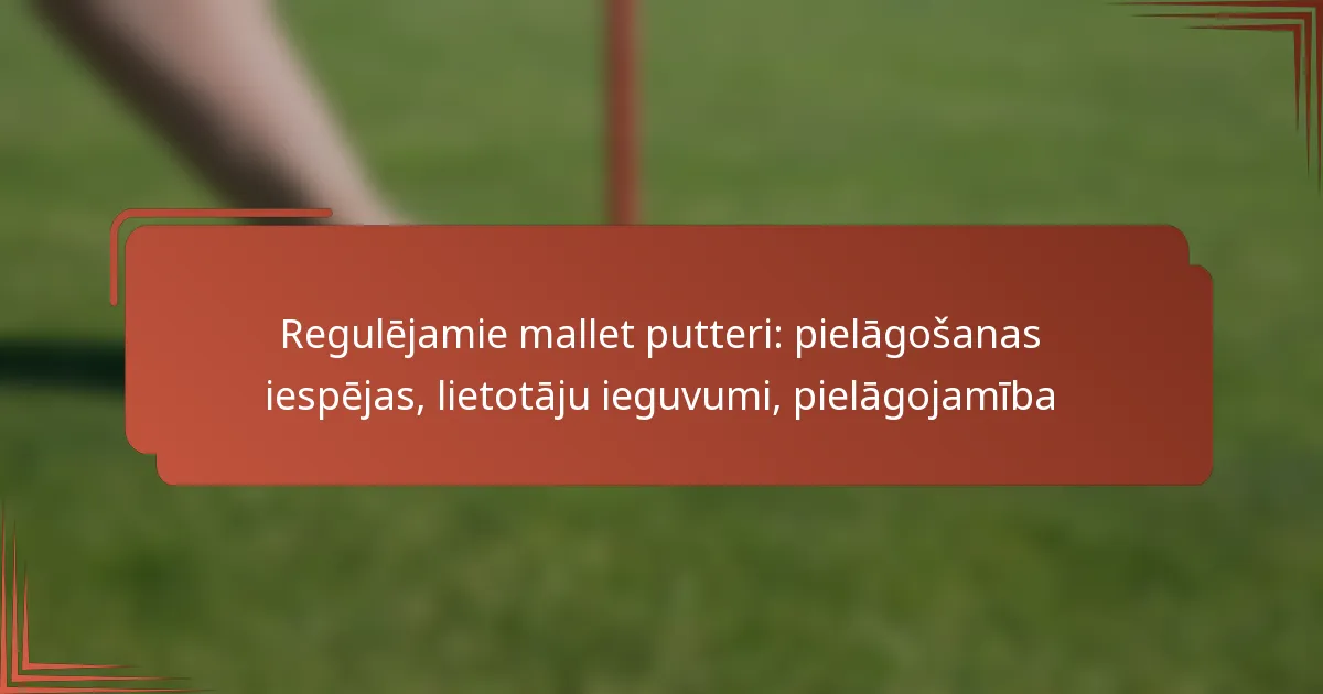 Regulējamie mallet putteri ir izstrādāti, lai uzlabotu sniegumu, ļaujot spēlētājiem modificēt savu aprīkojumu, pamatojoties uz dažādiem spēles apstākļiem. Šie putteri var tikt pielāgoti, lai apmierinātu dažādas zaļo ātruma, laikapstākļu, prasmju līmeņu, laukumu izkārtojumu un spēlētāju atsauksmes, nodrošinot personalizētāku golfa pieredzi.